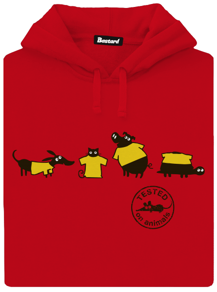 Pólóink gyártásakor egyetlen állat sem sérült meg, erre megesküdhetünk! Az „Állatokon tesztelve“ nyomatú póló nem csak a lelkes állatjogi aktivisták érdeklődését kelti majd fel. A pólók pamutból készülnek és nyomatuk rendkívül jó minőségű, így sokáig bírják a strapát – hacsak a házi kedvenced szét nem szaggatja.