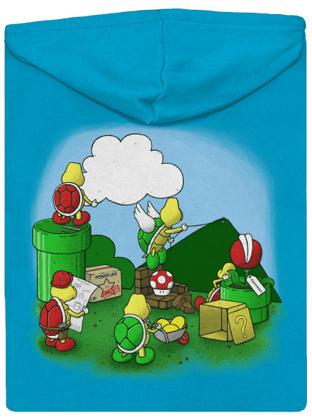 - Cipzáras pulóver, a hátsó részén mintával-nyomattal.