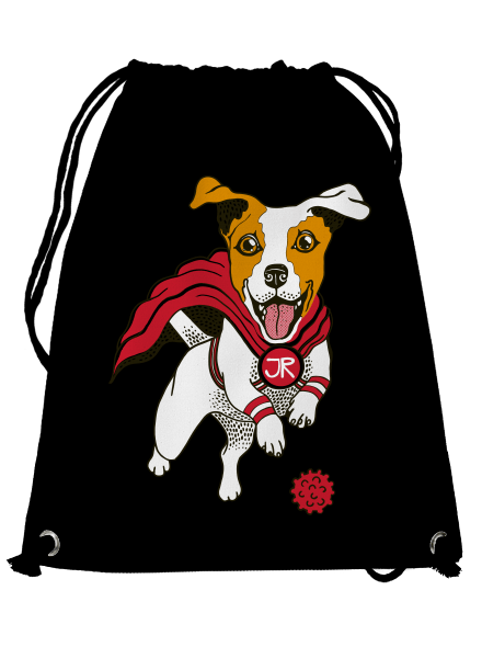 Jack Russell avagy kutya elemekre. Az energiadús kutya mindíg készen áll játszani. Semmilyen kutyaféle nem képes pillanatok alatt vissza hozni az eldobott játékot mint a Jack Russell. Peck grafikusunk számára is ez hozta az inspirációt ehhez a nyomathoz. De valjuk be, elég jól áll Russell barátunknak a szuperkabát!