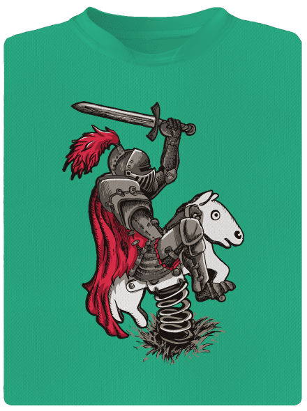 Minden férfiban egy gyermek lakozik... ebben a középkori lovagban is valószínűleg épp most ébredt fel. Vagy csak nem maradt pénze egy igazi lóra? Páncélos lovag kezében karddal és egy rugós lovacskán hintázik. Vagy valójában egy gyerek, aki páncélba bújt, hogy este ne kelljen hazamennie és tovább játszhasson? Nehéz eldönteni, hogy mi járt a nyomat tervező RAX fejében, találd ki magad.